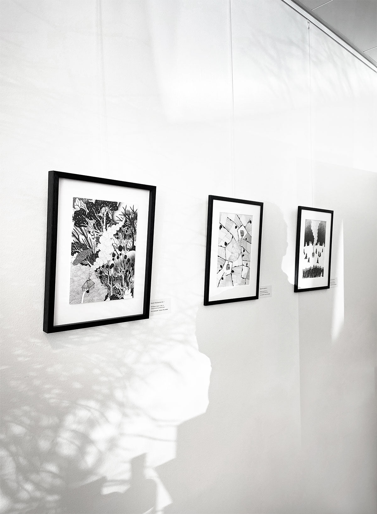 ...mine værker på gallerier og i kunstforeninger rundt i Danmark. Er du interesseret i at udstille mine tegninger, er du mere end velkommen til at kontakte mig. Er du en del af, eller arbejder du et sted med en kunstforening, kan du også tippe dem om mine tegninger – og måske kommer mine værker på den måde en dag op at hænge, hvor du færdes.